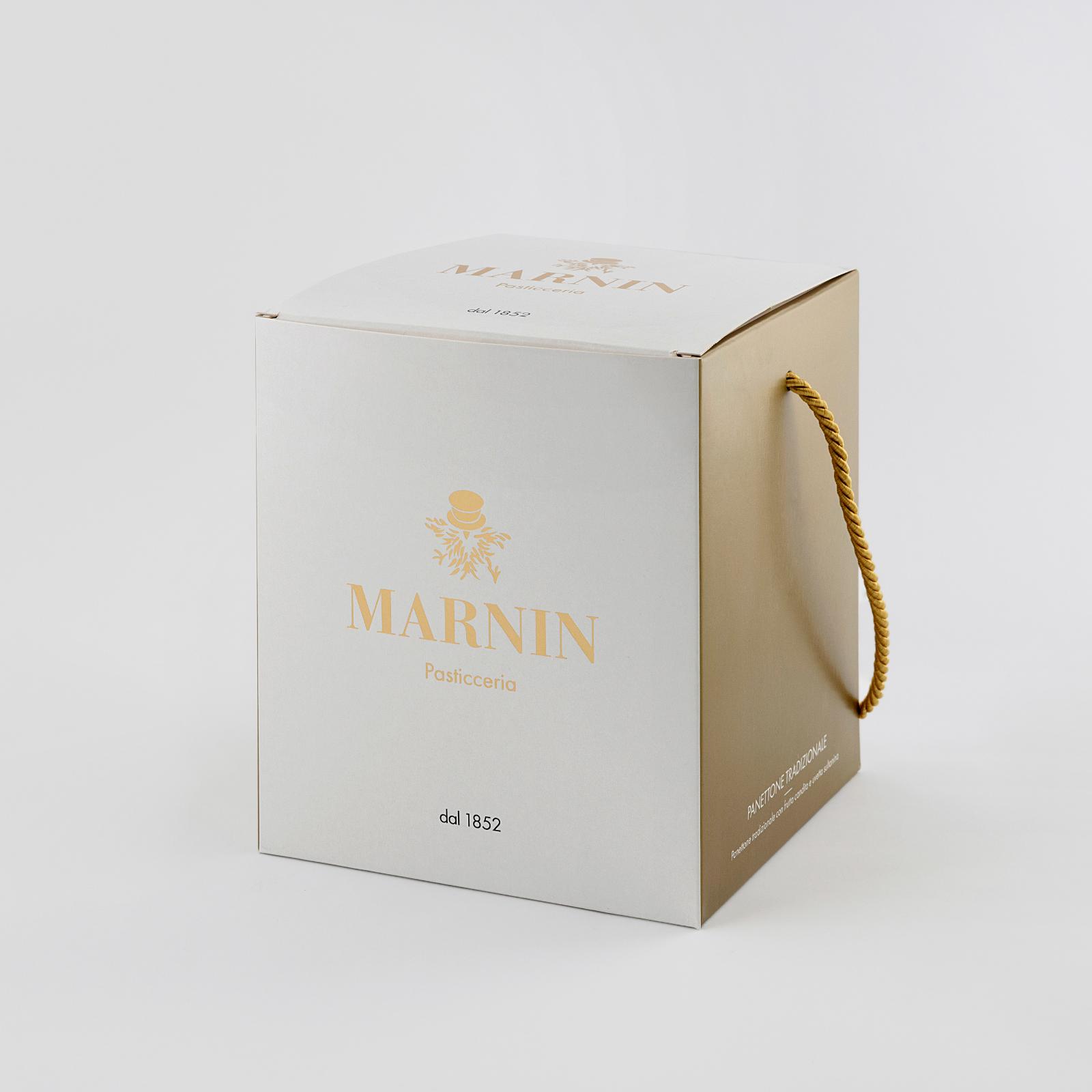 Soft and delicate, the classic panettone is the most renowned dessert of the Marnin production. Made in an artisan way, with highly selected raw materials, the dough is leavened and allowed to rise for 36 hours. It contains fine sultanas, oranges and candied citron, as required by the classic recipe, to which honey from Ticino is added.