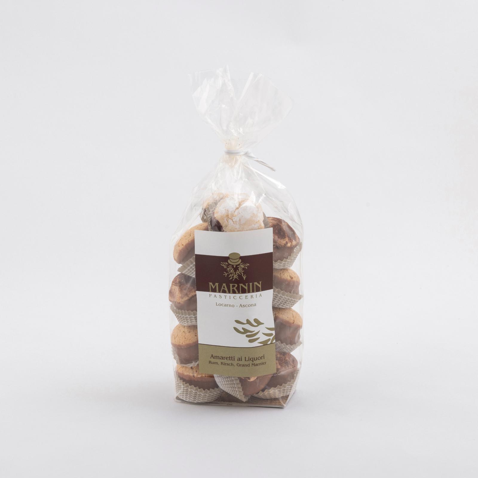 Negli amaretti ai liquori, la morbidezza dell’impasto incontra la raffinatezza di kirsch, Grand Marnier e rhum, dosati con equilibrio per esaltarne l’aroma. Mandorle pregiate e lavorazione artigianale danno vita a un amaretto ricco, profumato e avvolgente.