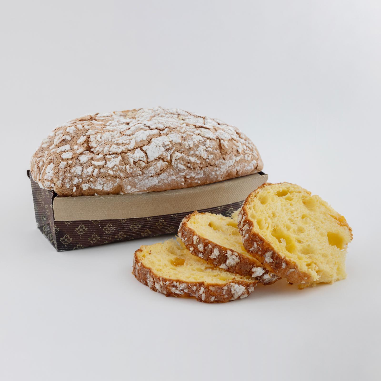 Farina di frumento, lievito madre (fermenti naturali acqua, farina di frumento), burro, zucchero, tuorlo (allevamento al suolo), ananas candito 13% (ananas, sciroppo di glucosio-fruttosio, saccarosio, acidificante: acido citrico, conservanti: potassio sorbato), miele d’acacia, sciroppo di zucchero invertito, glucosio (sciroppo di glucosio), burro di cacao, sale iodato, pasta frutta arancia e limone (sciroppo di glucosio-fruttosio, scorze di arancia, scorze limone, saccarosio, succo di limone, aromi naturali, succo di limone, conservante: anidride solforosa), pistacchio reale (pistacchio, sciroppo di glucosio, mandorle, aromi, estratti vegetali), sciroppo d’ananas ( ananas saccarosio), ghiaccia (zucchero, nocciole, mandorle, armelline, albume d’uovo (allevamento al suolo), farina di mais, amido di mais), acqua, può contenere tracce di: arachidi.